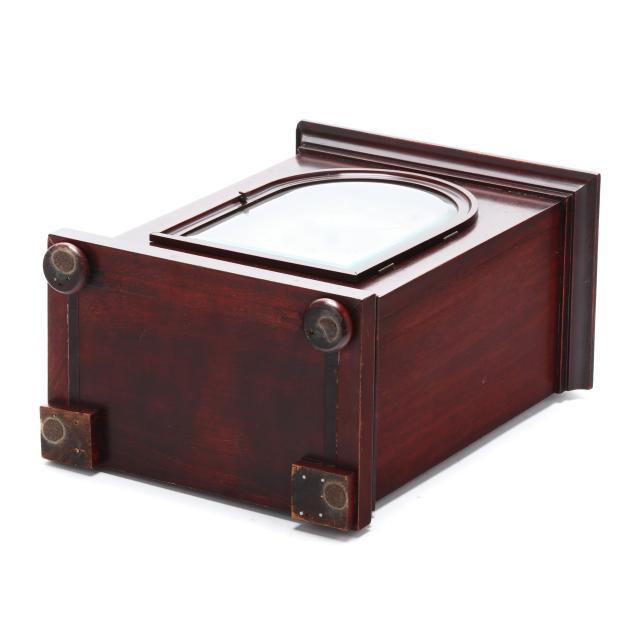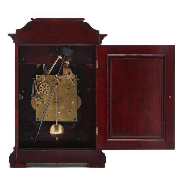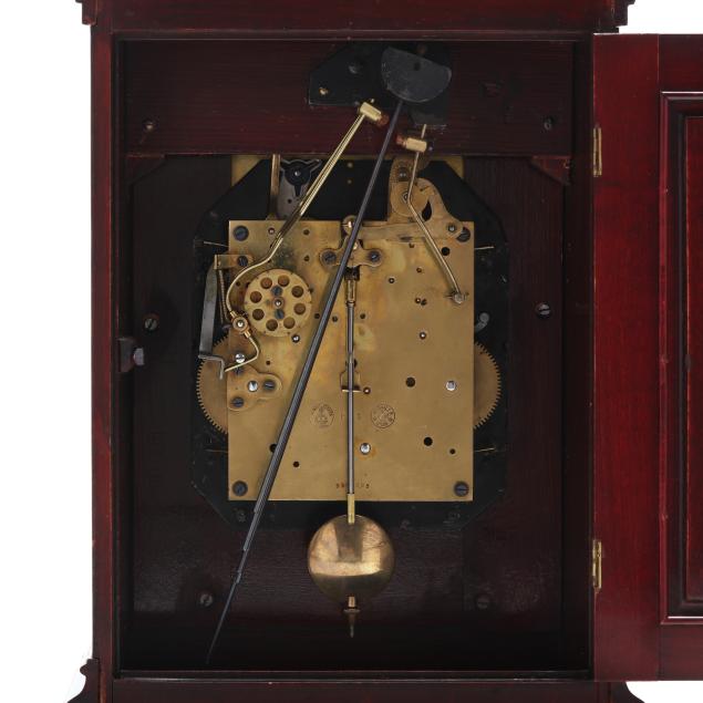 Some surface scratches and rubbing to wood case; a few minor chips to the case moldings; chime operation working when tested at the quarters. Please See Terms and Conditions of Sale: Clocks and Watches.