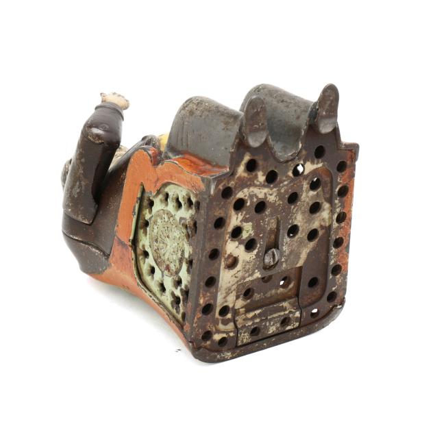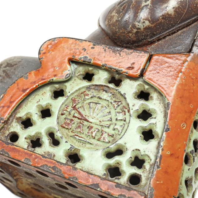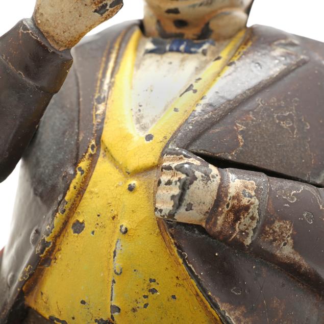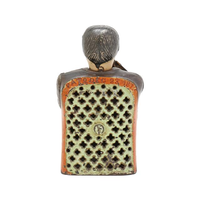 From a Prominent Collector, Aiken, South Carolina It is believed this bank may caricature a corrupt politician of New York City's Tammany Hall, the seat of the city's Democratic Party at the time, nodding in appreciation with each coin deposited. The J. & E. Stevens Company, founded in 1843, began producing banks in 1869 and their line became the largest in the world during the 1870s and 1880s.
