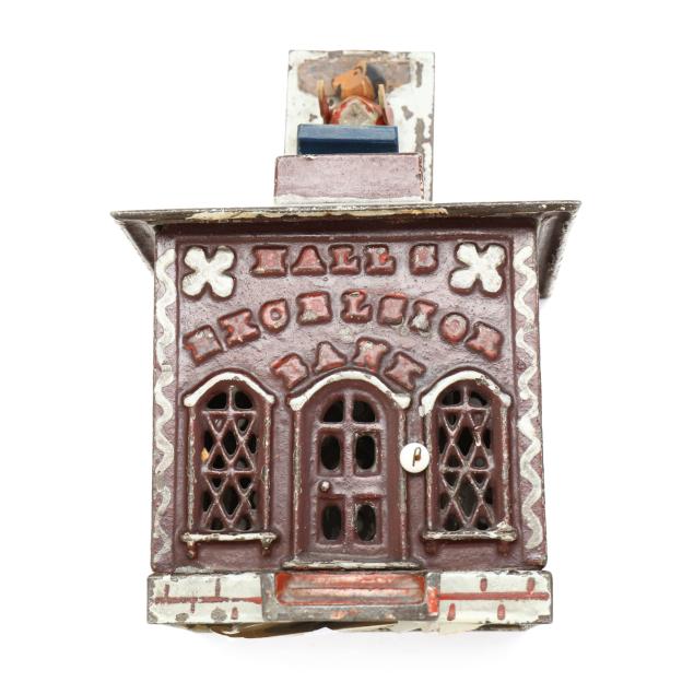 Hall's Excelsior is considered the first cast iron mechanical bank ever produced.