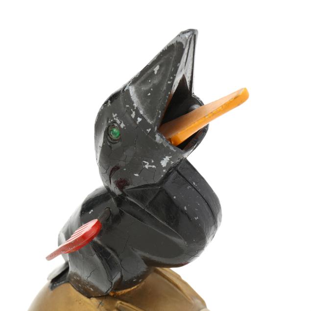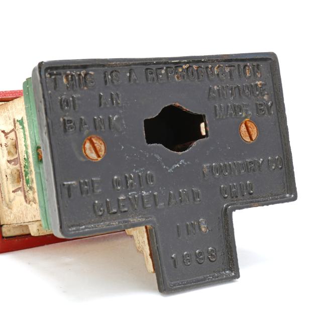 From a Prominent Collector, Aiken, South Carolina Still banks with some small areas of paint loss; the Ohio reproduction bank with small areas of rust spotting; the bird bank with areas of paint cracking and loss, loss and crack to metal base.