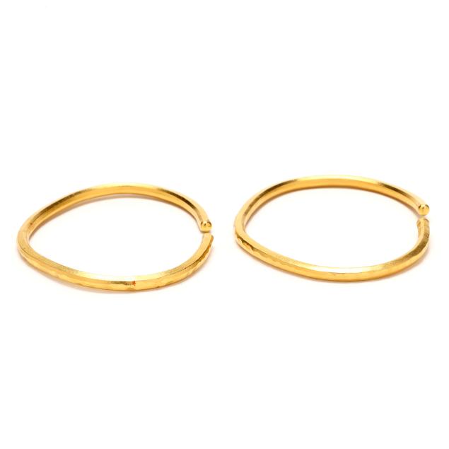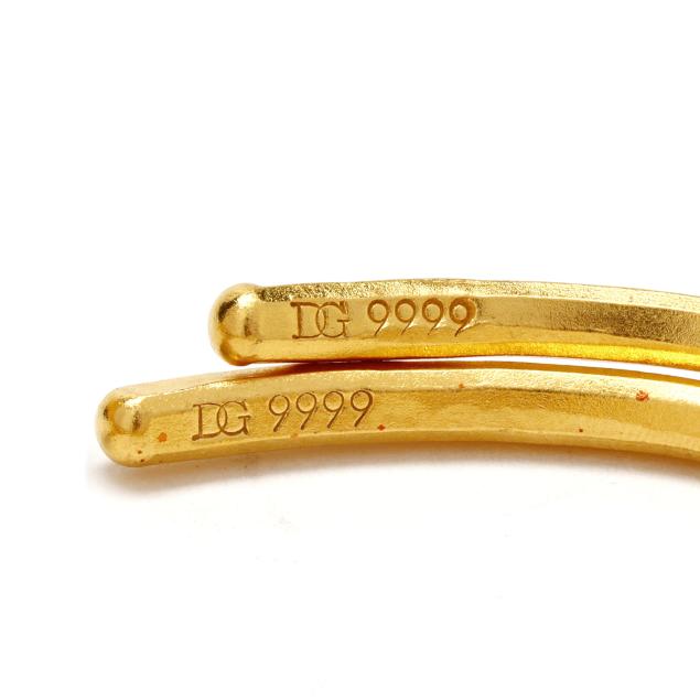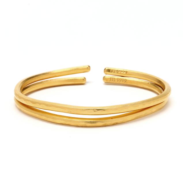 Cuff bracelets with hammered finish, stamped DG 9999, XRF testing 24KT.