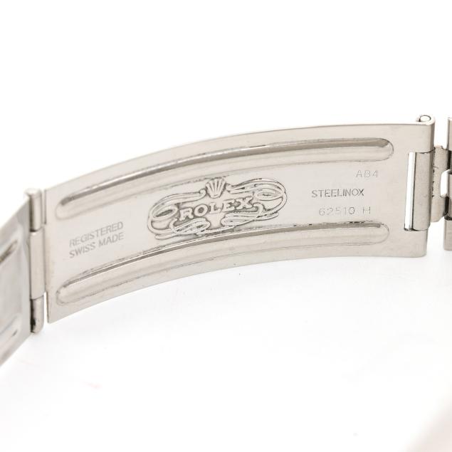 Scratches to case and bracelet; replacement bezel and dial; one diamond on bezel with chip; overall, good estate condition; running at time of examination. Please see Terms and Conditions of Sale: Clocks and Watches.