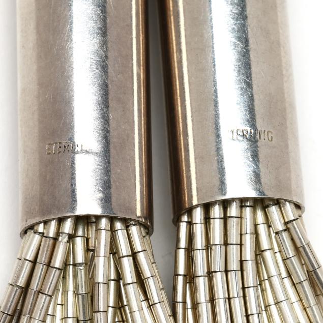 Each strand with cylindrical silver beads, completed with a chain link and hook clasp, stamped Sterling.
