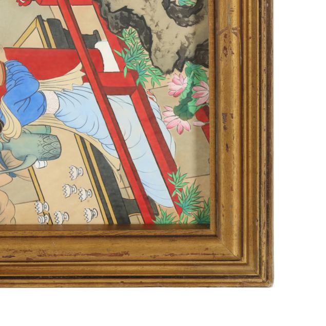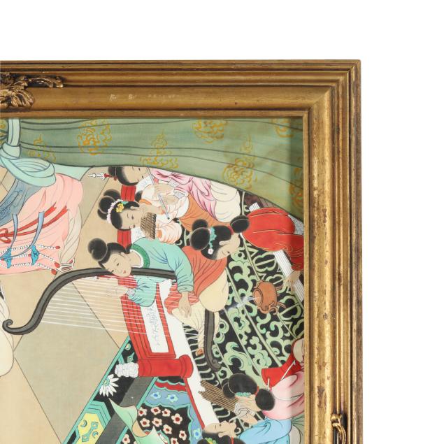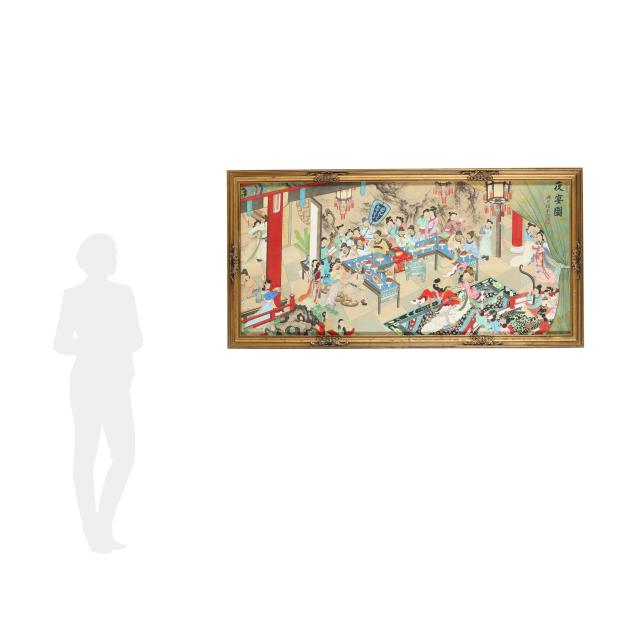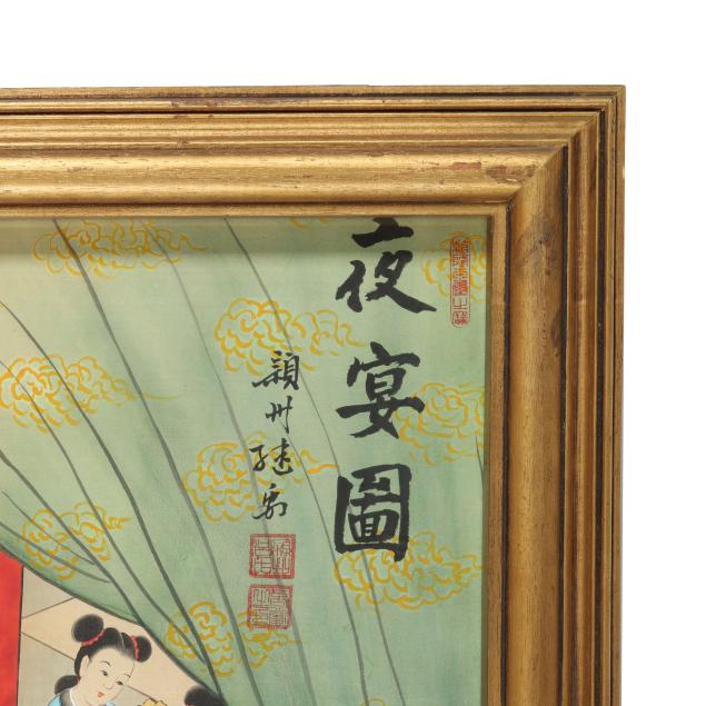Mid to late 20th century, a vintage painting inspired by an earlier Chinese masterpiece, title to upper left corner together with artist's signature and two red artist seals, presented framed under glass in gilt wood frame.