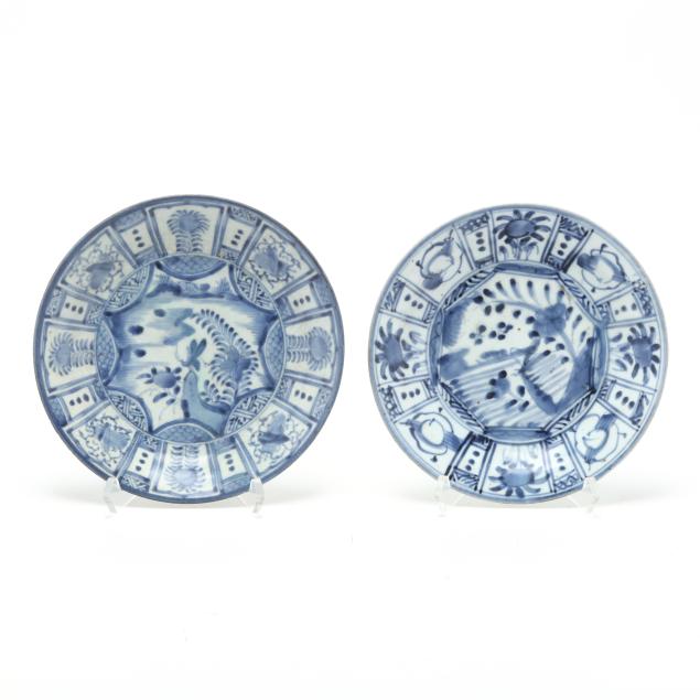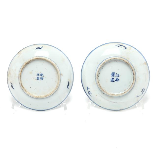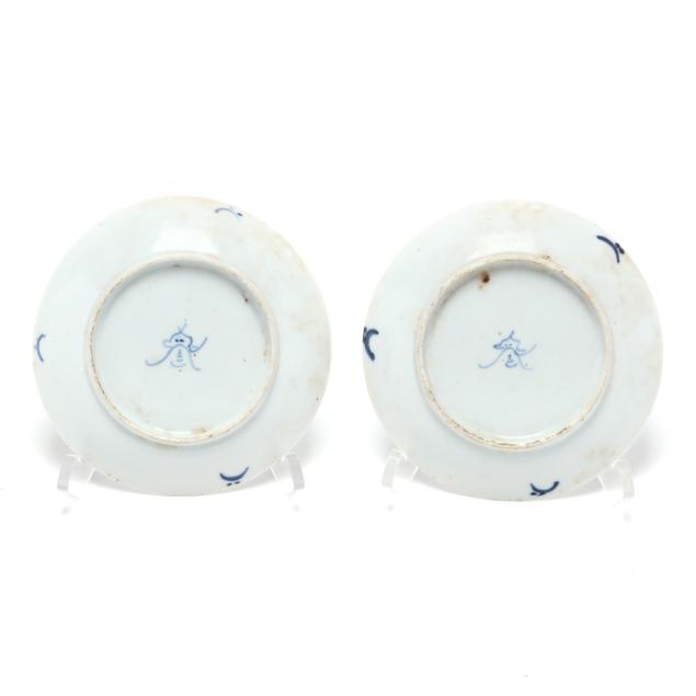 18th and 19th century, includes (9) porcelain dishes with a variety of patterns and decoration in underglaze blue, some dishes are marked to the underside.