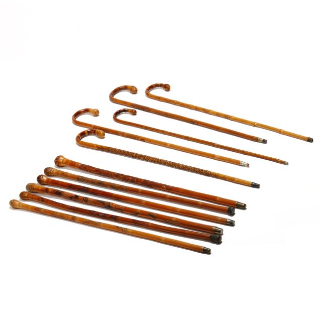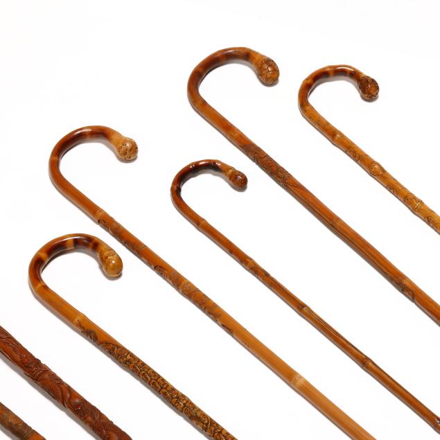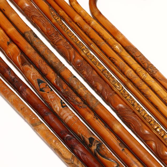 a-collection-of-11-hand-carved-japanese-walking-canes-with-inscriptions