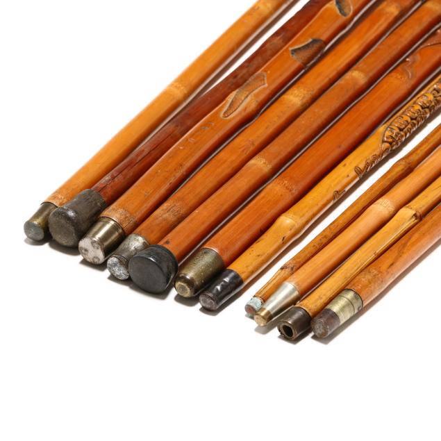 A Collection of (11) Hand Carved Japanese Walking Canes with Inscriptions