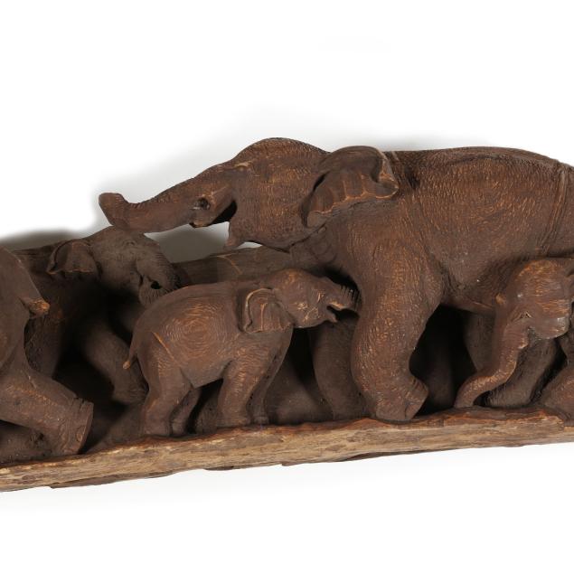 Seven Ft. Hand-Carved Procession of Elephants