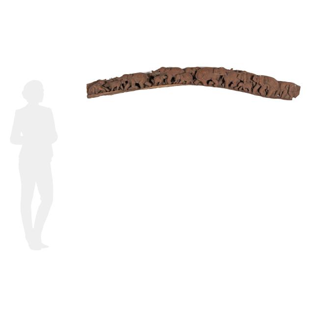 Possibly African, circa mid-20th century, carved in high relief from a single log of wood, unsigned.