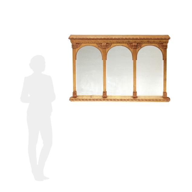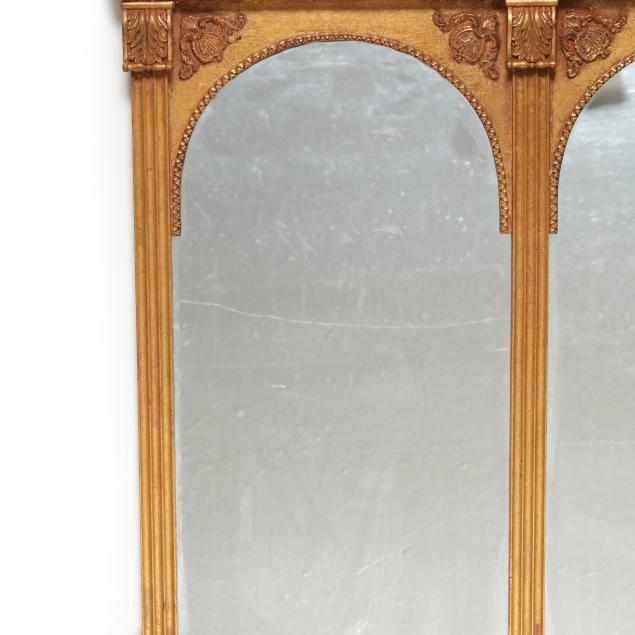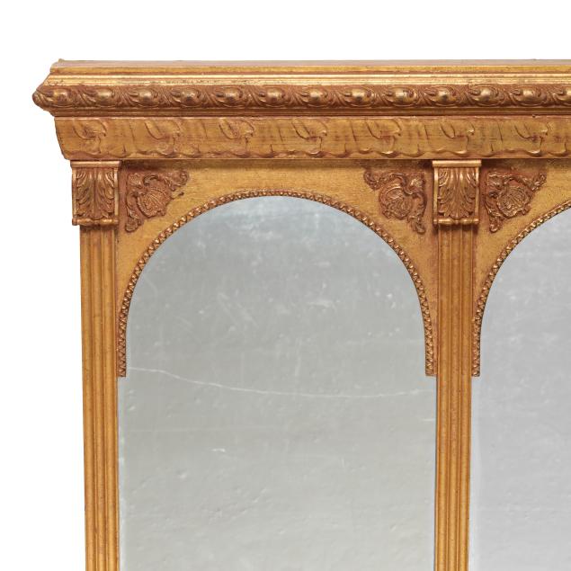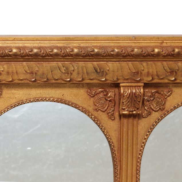 Late 20th century, gilt wood and composition, four fluted pilasters framing three arches within with a foliate relief cornice and base molding, numbered C-706 label to verso.