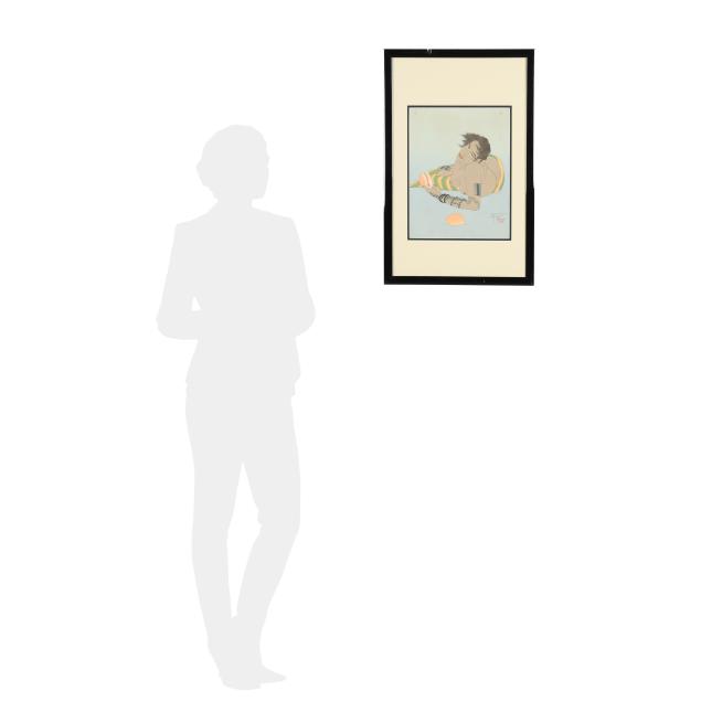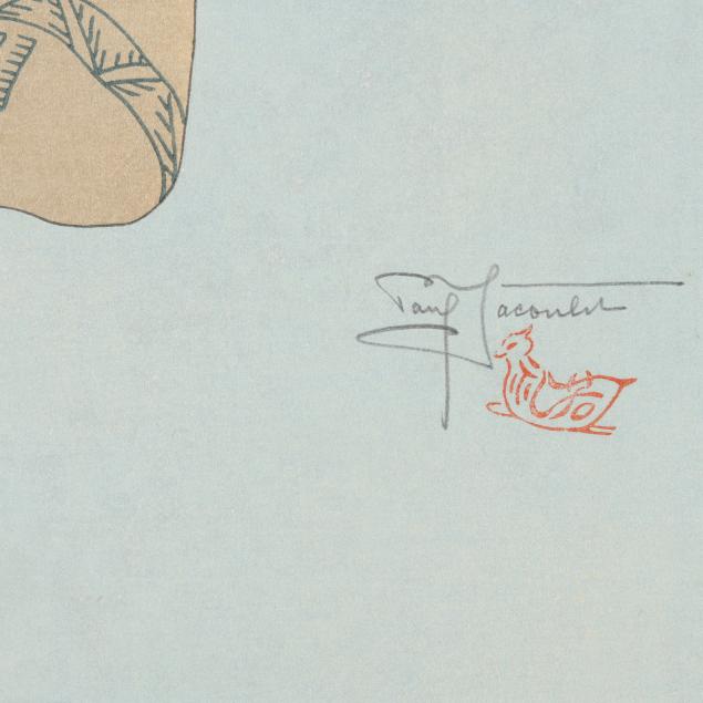 Paul Jacoulet was a French woodblock print artist renowned for blending traditional Japanese ukiyo-e techniques with his own innovative style. Raised in Japan, he mastered Japanese culture, language, and the art of woodblock printing. Jacoulet traveled extensively throughout Asia and the Pacific, capturing portraits of indigenous people in their traditional attire and daily lives, making his work of both artistic and anthropological significance. He is recognized as one of the few Western artists to be acknowledged in Japan for his woodblock mastery. His prints, known for their vibrant colors, elaborate detail, and large format, often utilized techniques like embossing, lacquers, mica, metal pigments, and powdered semi-precious stones. Jacoulet employed highly skilled Japanese craftsmen, often crediting them in the margins of his prints. His work gained international acclaim after World War II, attracting collectors such as General Douglas MacArthur, Greta Garbo, and Queen Elizabeth II. Today, Jacoulet's prints remain highly sought after by collectors worldwide.
