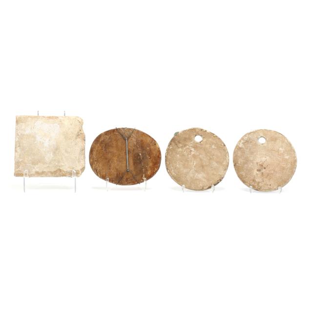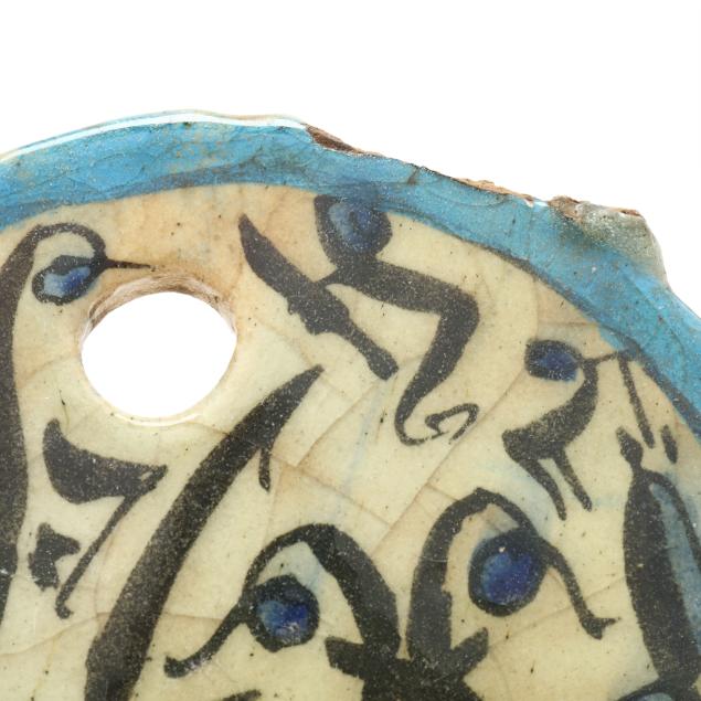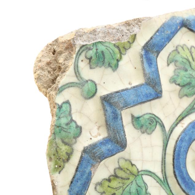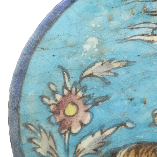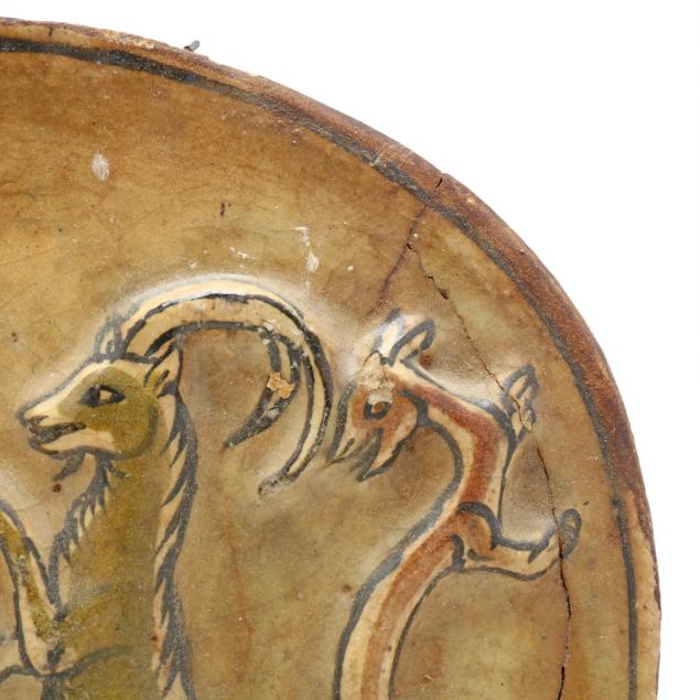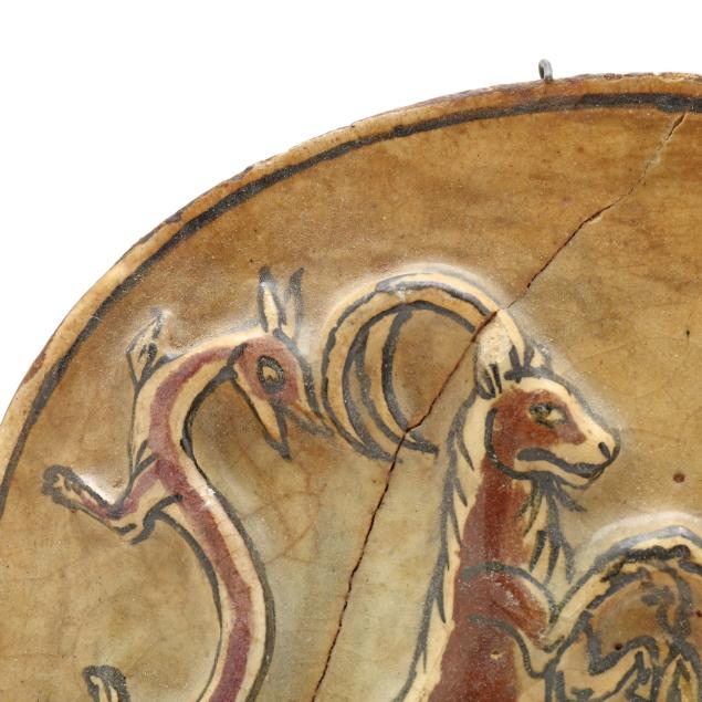 Tile with bas-relief animals with old break and repairs and chip; the rest with small chips.