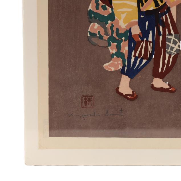 Collection of Michael and Ingrid Kelly, Worldwide Gallery Antiques, Fredericksburg, Virginia Kiyoshi Saito was a significant figure in the Sosaku Hanga movement. This “Creative Prints” art movement emphasized the artist’s individual expression and direct involvement in all stages of printmaking: designing, carving, and printing rather than relying on the traditional collaborative method used in ukiyo-e prints. Saito’s artistic aspirations led him to Tokyo in 1932 to study Western-style painting. However, he discovered his passion for woodblock printing and began his experimentation with the technique. His pivotal moment arrived in 1938 with his "Winter in Aizu" series, which portrayed the snowy landscapes of his birthplace and became a central theme in his body of work.