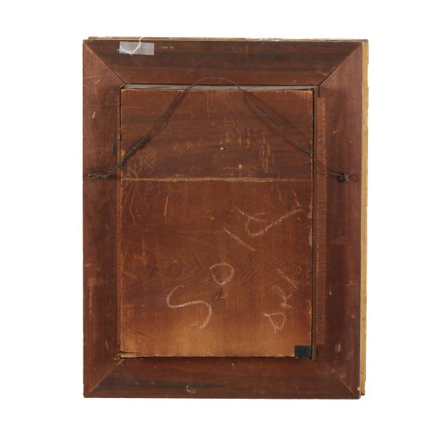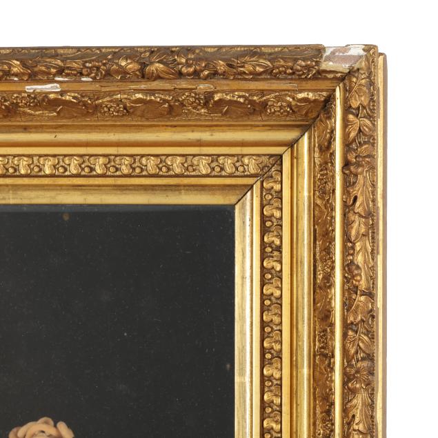 Frame with loss to upper right corner, a few old breaks and repairs to small chips at edges.