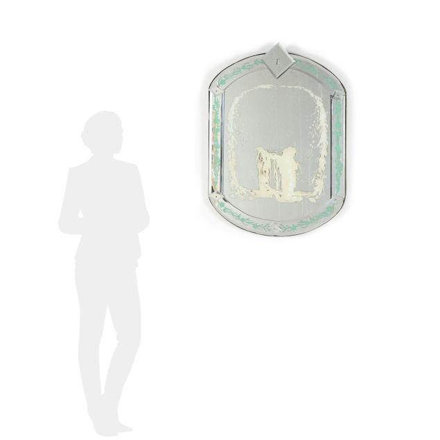 Upper mount possibly later, and with areas of silver loss; a few small chips to lozenge mounts; chipping and paint loss to wood.