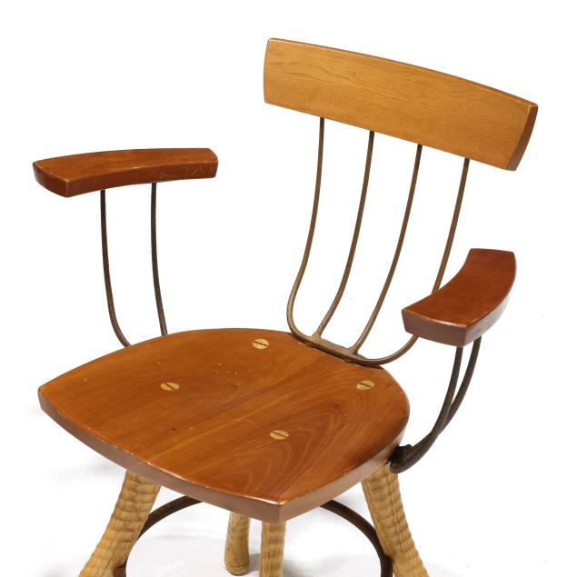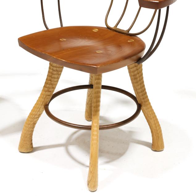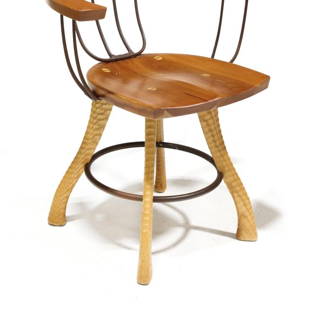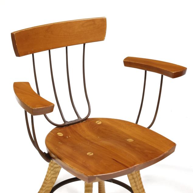 Pennsylvania, late 20th century, cherry, iron and oak, through tenon joinery, labeled.