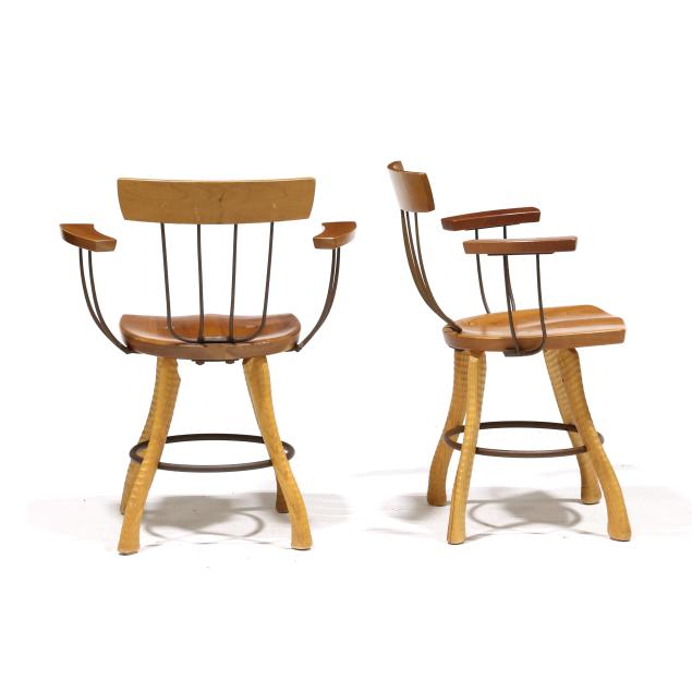 Scratches and some indents to the seats from use; finish wear to the arm edges.