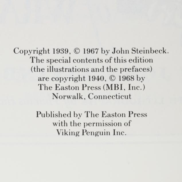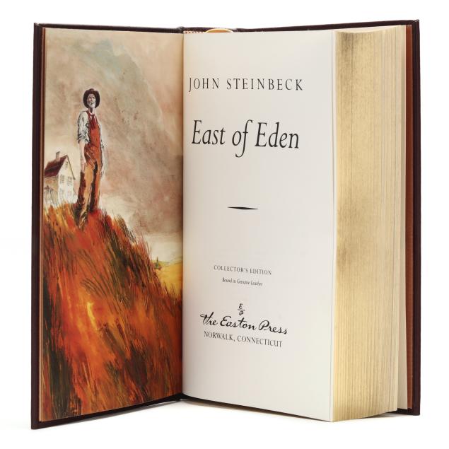 Norwalk, CT: The Easton Press, [1988]. Collector's edition; (4) titles; all bound in genuine leather decorated and lettered in gilt, with moire endpapers, all edges gilt, and satin ribbon bookmark; 8vo; 559; 602; 196; 281pp. With illustrations. To include: The Grapes of Wrath, East of Eden, Cannery Row, and The Winter of Our Discontent.