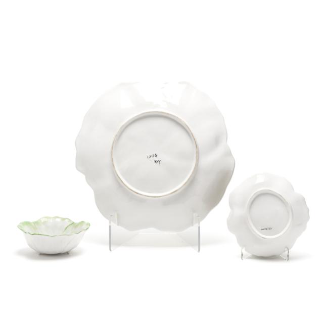 All with crazing; nicks to rims of both platters; nicks to rims of (2) small plates; (1) small bowl with nick to rim.