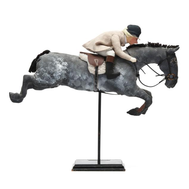 From a Prominent Collector, Aiken, South Carolina Break to one leather reign; cracking to leather straps; some surface marks to stand.