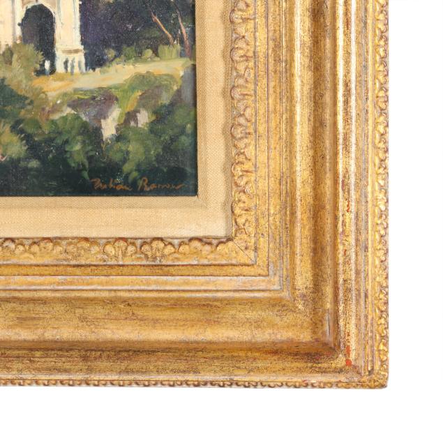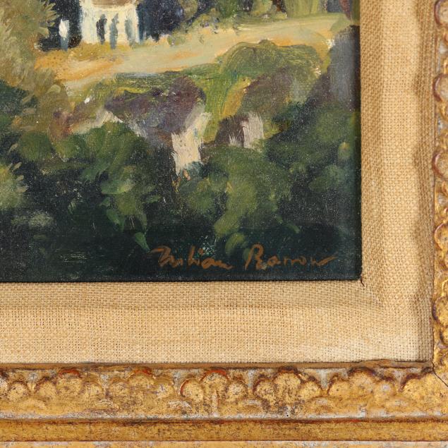From a Prominent Collector, Aiken, South Carolina Julian Barrow was an English artist born in Cumberland who spent most of his life in London. He studied in Florence and was an inveterate traveler, painting views of Europe, New York, the Middle East, and India. For more than thirty years, Barrow lived and worked in his studio on Tite Street in Chelsea, in the historic building once occupied by artists including John Singer Sargent, James McNeill Whistler, Glyn Philpot, and Augustus John. A frequent exhibitor at the Royal Academy, Barrow also served as President of the Chelsea Arts Society.