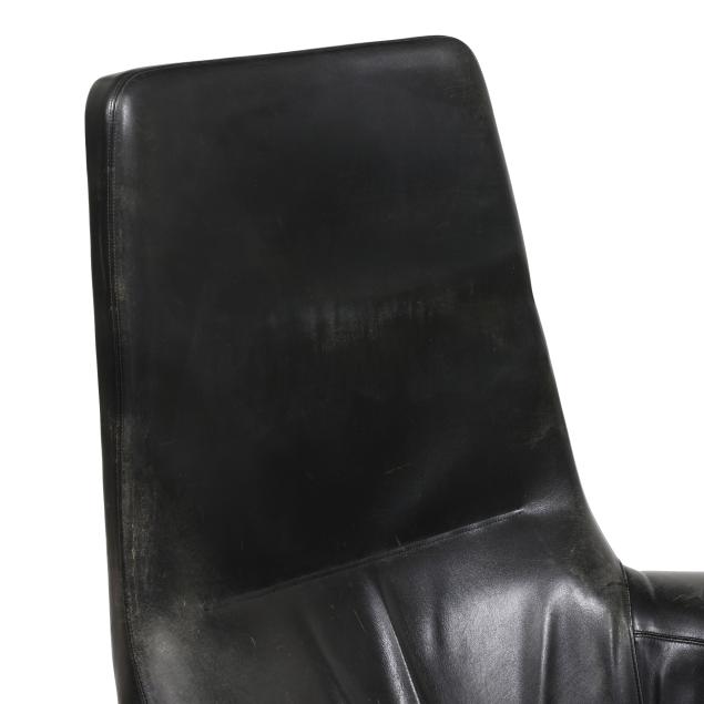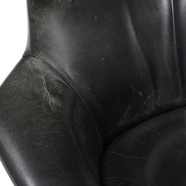 Leather with wear from use; tear to the left arm; some scuffs to the legs from use.