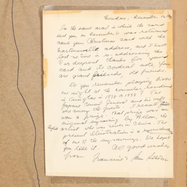 From the Collection of a Lady, Martinsville, Virginia Toning and minor stains to the sheet and mat, not examined outside the frame.