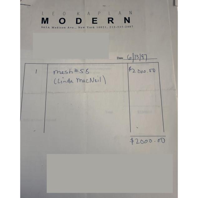 From the Collection of Mignon Durham, Asheville, North Carolina Accompanied by copy of receipt from Leo Kaplan Modern dated 6/13/97.