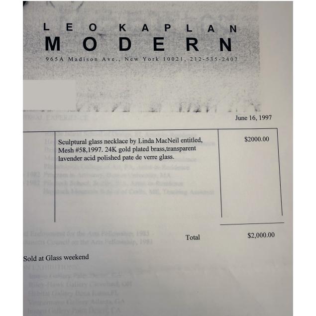 Linda MacNeil is an American jewelry artist known for integrating glass and metal. She studied at the Philadelphia College of Art, Massachusetts College of Art, and earned a BFA from Rhode Island School of Design in 1976. She works with Vitrolite and plate glass via kiln casting and cutting, and her honors include the Massachusetts Council on the Arts Fellowship (1979), NEA Fellowship (1984), James Renwick Alliance Master of the Medium (2011), and Saul Bell Design Award (2020). Her work is in major collections including The Met, MFA Boston, LACMA, MFA Houston, Philadelphia Museum of Art, Smithsonian American Art Museum, Corning Museum of Glass, and the Victoria and Albert Museum.