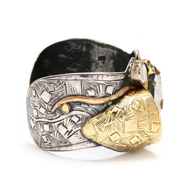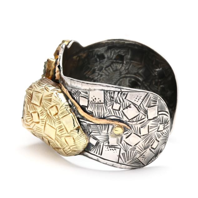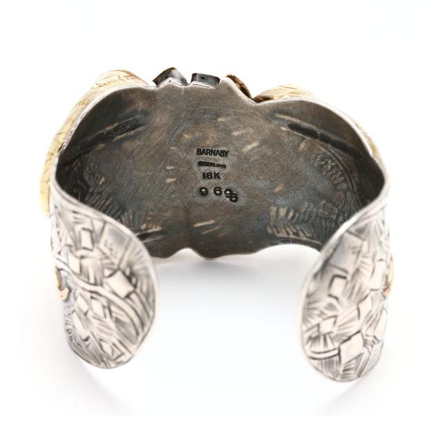 Sterling Silver, Gold, and Gem-Set Cuff Bracelet, Margaret Barnaby