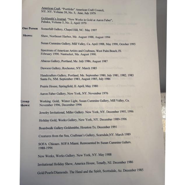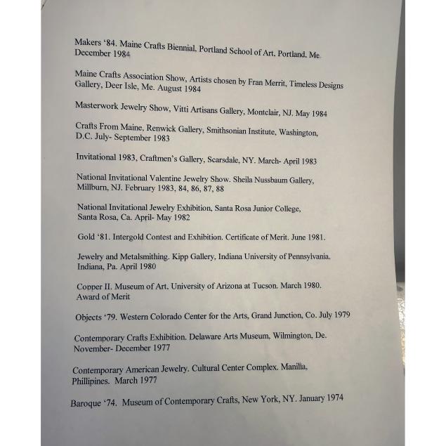 Margaret Barnaby is an American jewelry artist known for nature‑inspired one‑of‑a‑kind pieces. Her work employs granulation, wirework, and embroidery, using materials such as pearls, shells, coral, gemstones, bone, and wood. She has taught at the Rhode Island School of Design and the Penland School of Crafts, with exhibitions in galleries and museums worldwide.