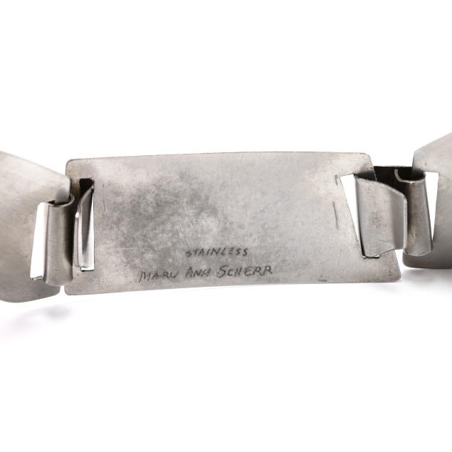 From the Personal Jewelry Collection of the late Mary Ann Scherr, Raleigh, North Carolina As a noted designer, Mary Ann Scherr's work can be found in the permanent collections of major museums including the Vatican Museum of Art, Metropolitan Museum of Art, National Museum of Art, and many others of note. Moving to North Carolina in 1989, she shared ownership in Raleigh's Roundabout Art Collective; her designs have been featured in the Gregg Museum of Art and Design, the Mahler, the Carolina Designer Craftsmen Guild, and the Penland School of Crafts.