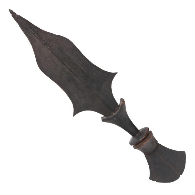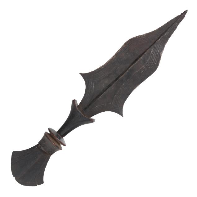 (2) carved wood and metal weapons, the first, a Congolese