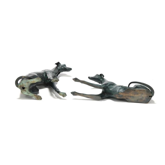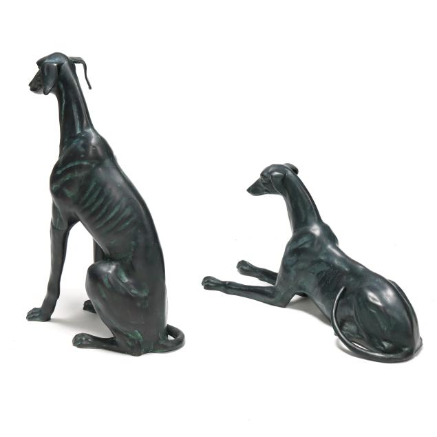 Late 20th century, including one cast in a seated pose, the other in recumbent form, unmarked.