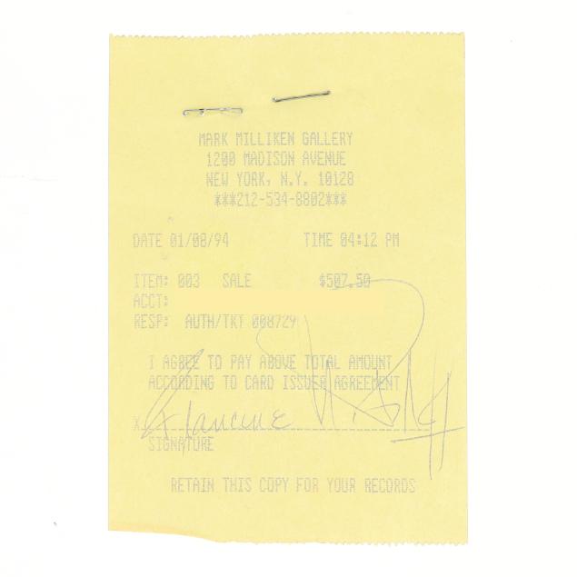 Accompanied by Thomas Mann flyer and receipt from Mark Milliken Gallery, New York, NY dated 1/8/94.