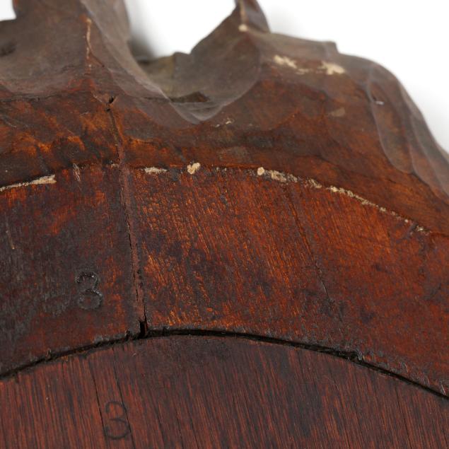 Some surface grime to painted panels; one mirror's upper left scrolled arm with break and repair.