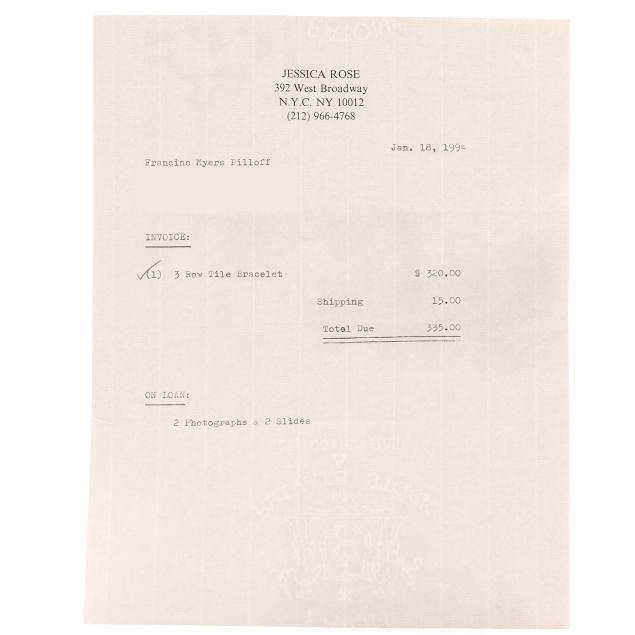 From the Collection of Francine Pilloff, Chapel Hill, North Carolina Accompanied by sales invoice dated Jan. 18, 1994.