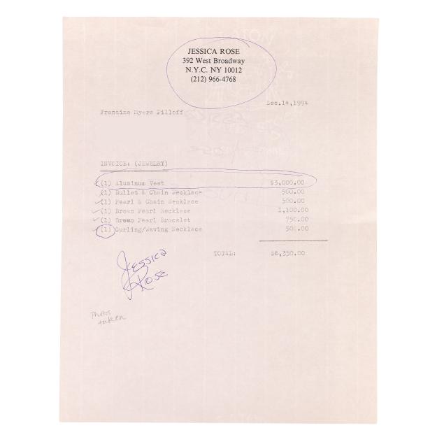 From the Collection of Francine Pilloff, Chapel Hill, North Carolina Accompanied by original receipt dated Dec. 14, 1994.