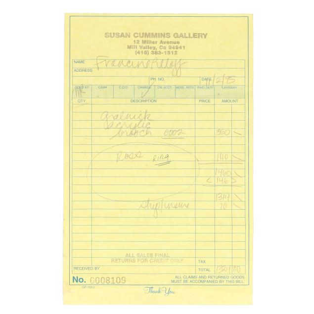 From the Collection of Francine Pilloff, Chapel Hill, North Carolina Accompanied by original receipt from Susan Cummins Gallery, Mill Valley, California.