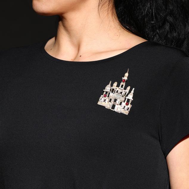 Silver and Gem-Set Architectural Brooch, Unknown Artist