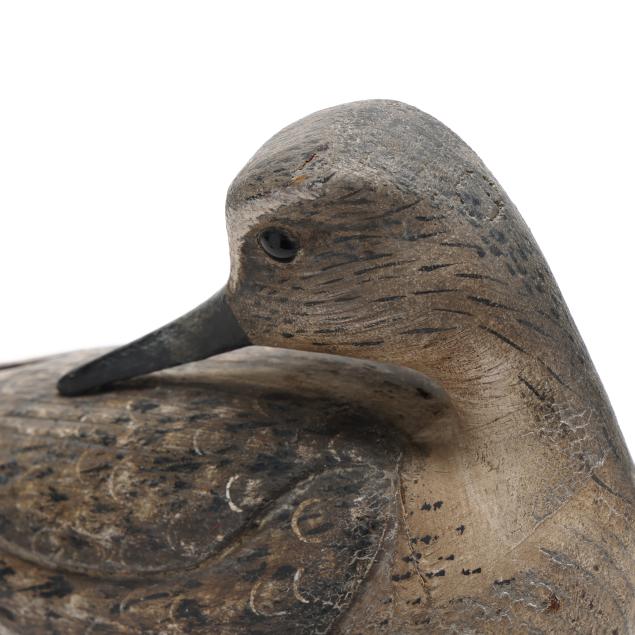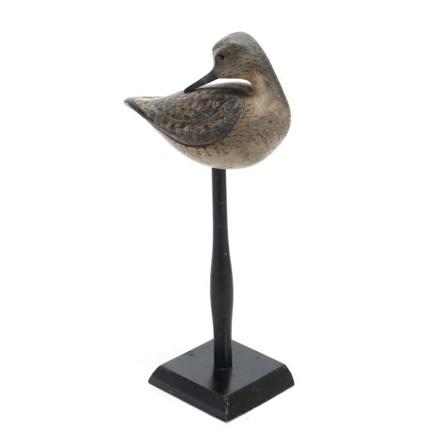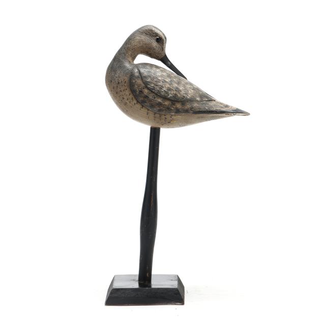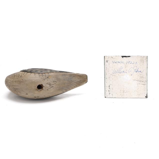 Onacock, Virginia, circa 1982, carved and painted wood, glass eyes, incised WG, custom stand is signed William Gibian and dated VINTAGE 1982-3.