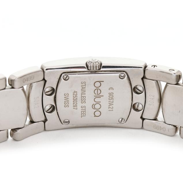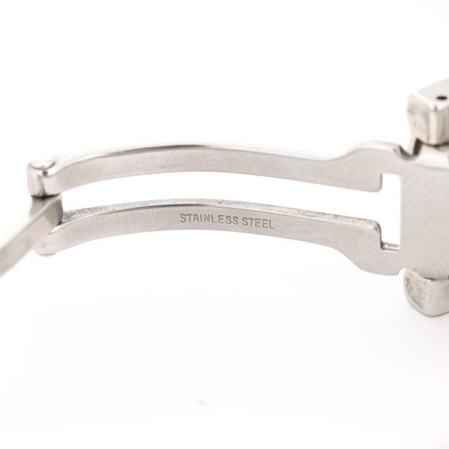 From the Collection of Francine Pilloff, Chapel Hill, North Carolina Scratches to case and bracelet; overall, good estate condition; running at time of examination. Please see Terms and Conditions of Sale: Clocks and Watches.