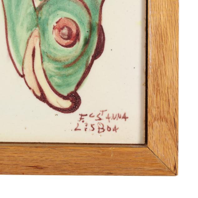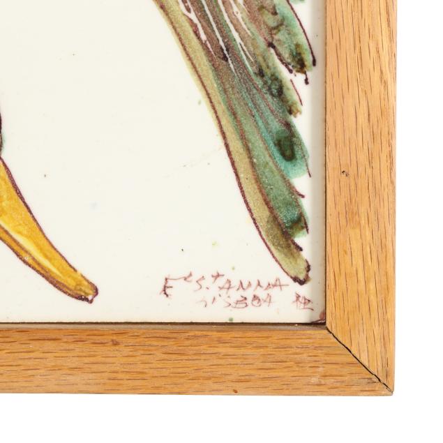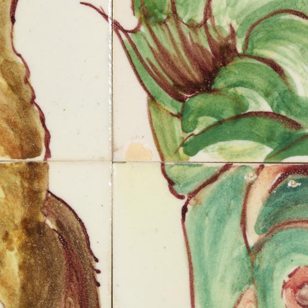 From a Prominent Collector, Aiken, South Carolina Bird mural with a few scattered surface stains and small areas of crazing; one tile with chip to fish mural.