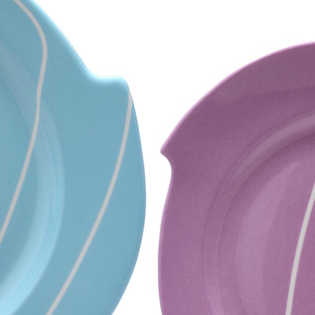 England, contemporary, (60) pieces in (5) different pastel colors to include (12) dinner plates (10 1/4 in.); (12) salad plates (7 3/4 in.); (12) bread and butter plates (6 in.); (12) rimmed soup bowls (9 in.); and (12) chargers (12 1/2 in.), all marked to underside.