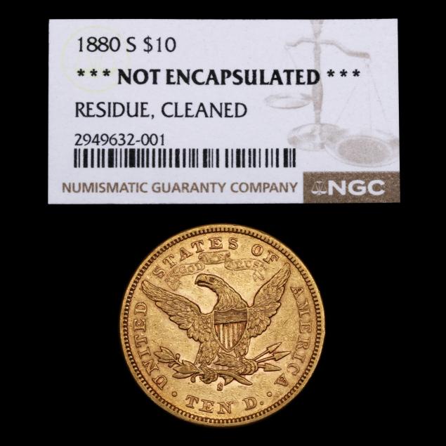 1880-S $10 Liberty Gold Eagle, NGC RESIDUE, CLEANED