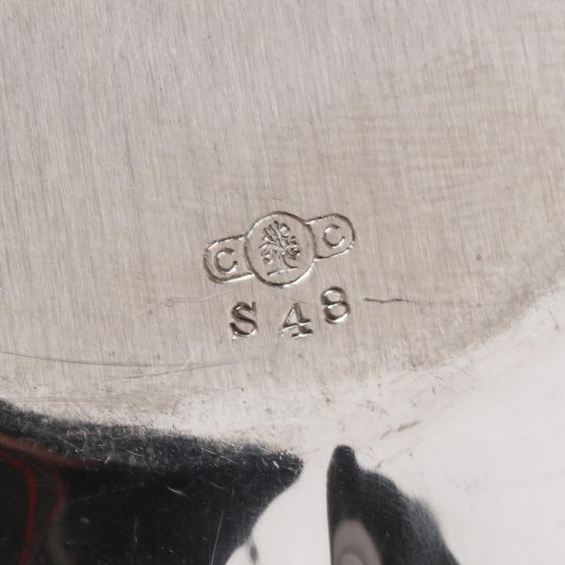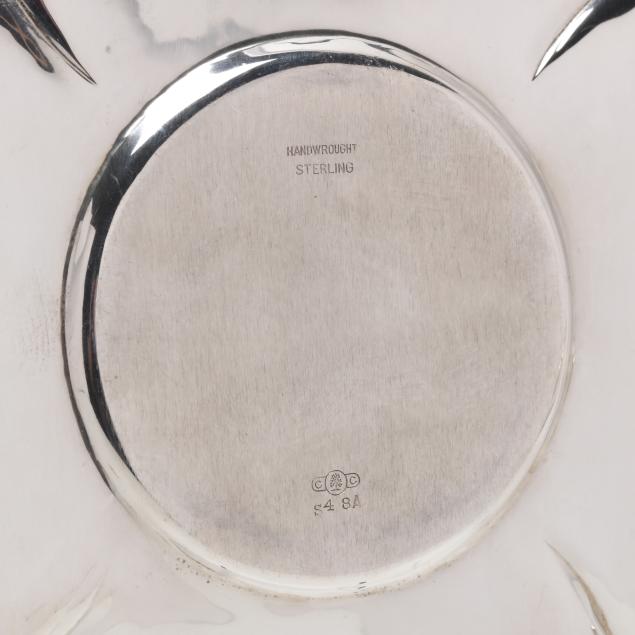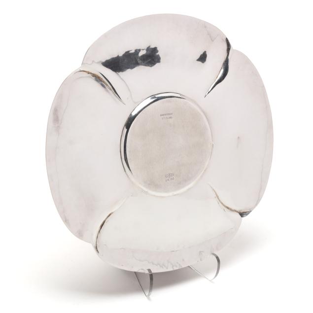 Pattern numbers S4B S4A, petal form bowl and conforming underplate, with a hammered face, not monogrammed.