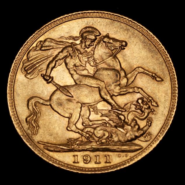 Obv: George V; Rev: St. George slaying the dragon. 7.9881 g, 0.9170 gold, 0.2355 oz, AGW, KM 820. Almost Uncirculated.