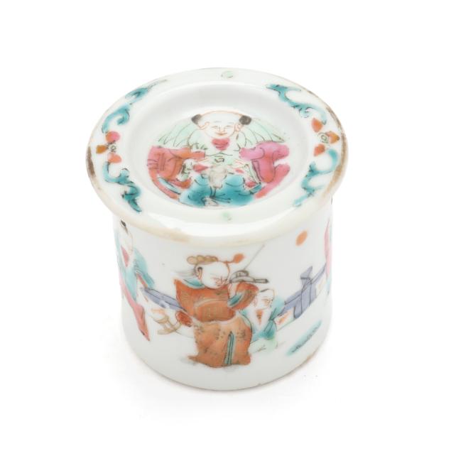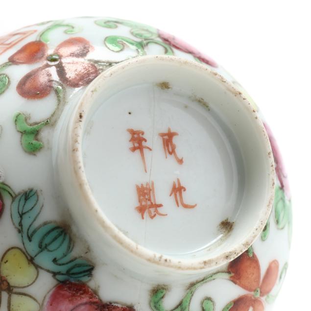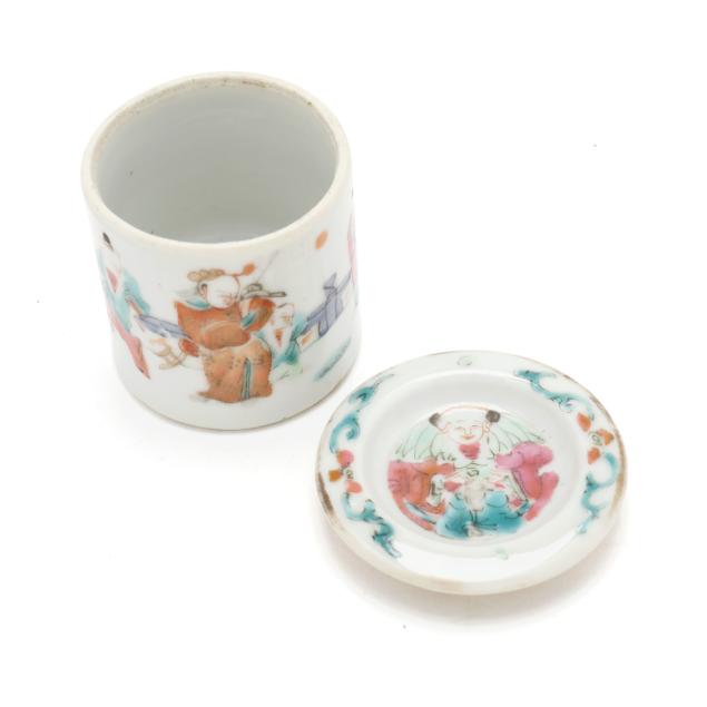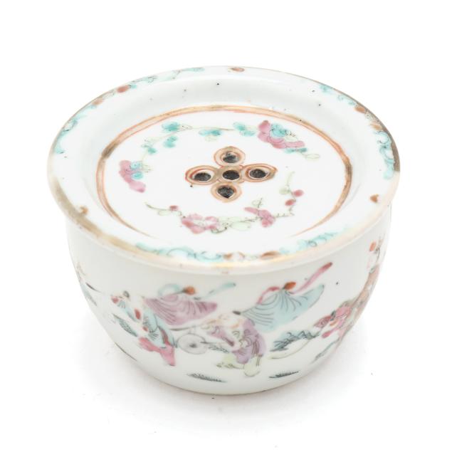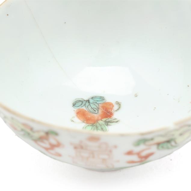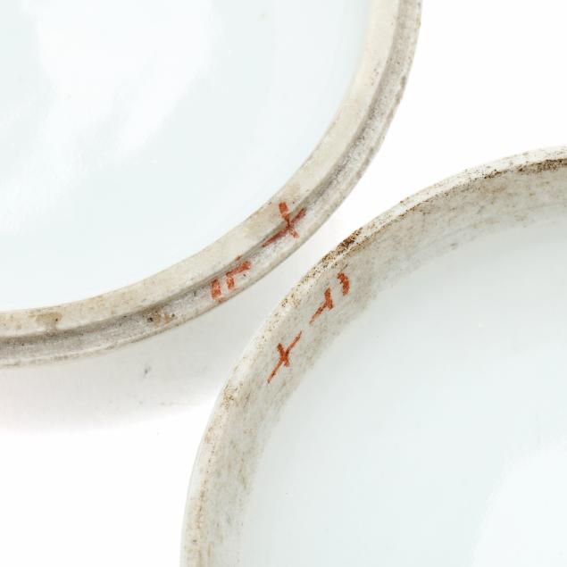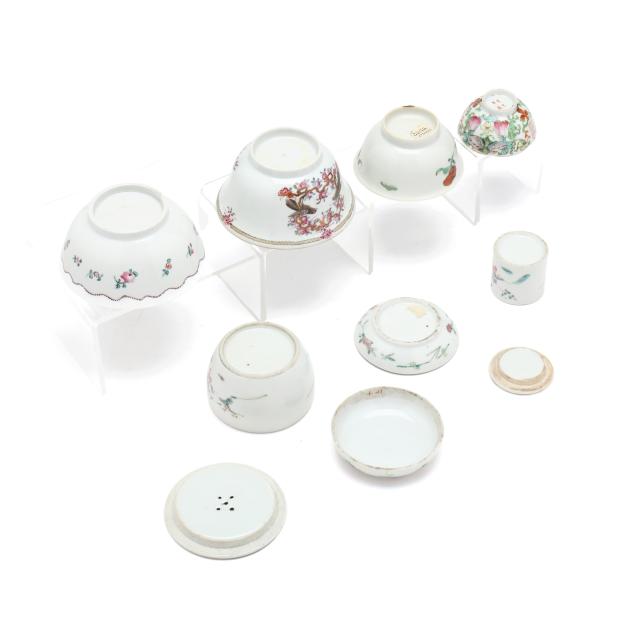 18th and 19th century, includes four bowls (largest 2 in., 5 in. diameter), one seal paste jar with cover (1 3/4 in., 4 in. diameter), a cup with reticulated dish set cover (2 1/2 in., 3 3/4 in. diameter), and a small jar with dish set cover (2 in., 2 1/8 in. diameter).