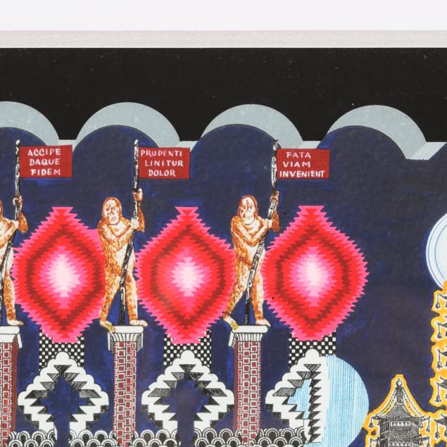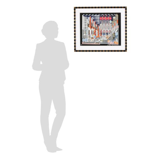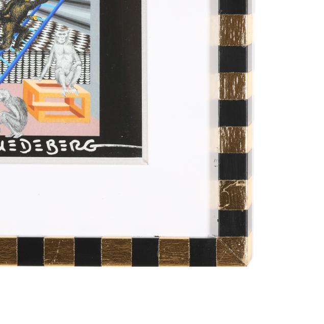 Print in colors in custom Pedro Friedeberg ebonized and gilt-decorated wood frame, 2020, artist signed and inscribed in silver ink lower margin.