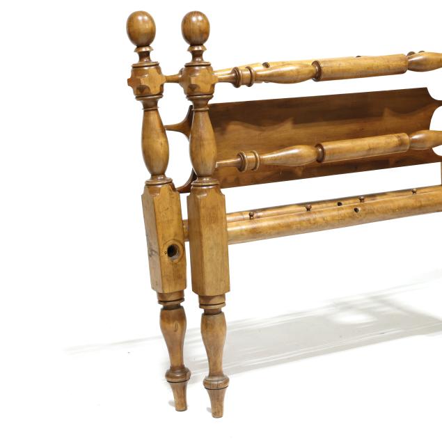 From a Private Collection, Frankfort, Kentucky Later rope; some tight shrinkage cracks to turned posts; headboard crest rail with some dark scraping and wear.
